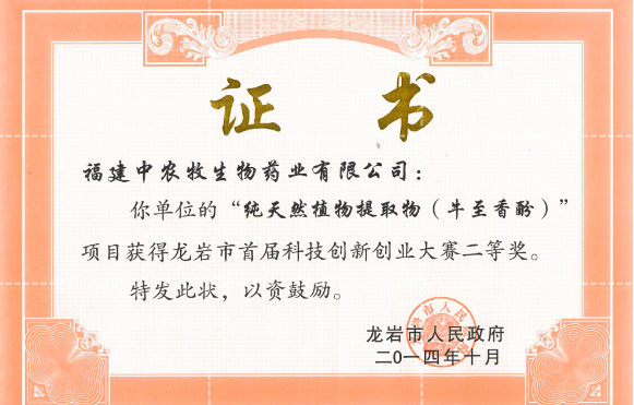 • 龍巖市首屆科技創(chuàng)新創(chuàng)業(yè)大賽二等獎